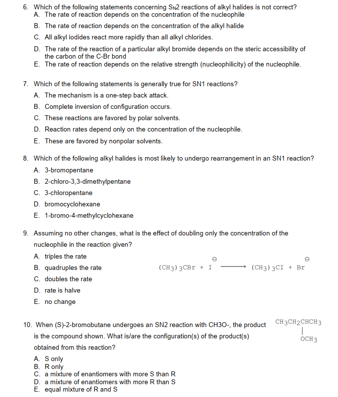 Solved 6 Which Of The Following Statements Concerning Sn2 Chegg Com