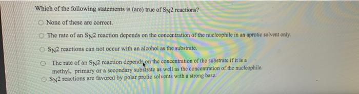 Solved 7 Which Of The Following Statements Is True A Sn2 Chegg Com